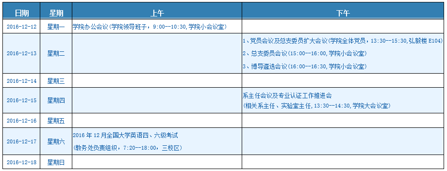 一周会议安排(12/12-12/18)