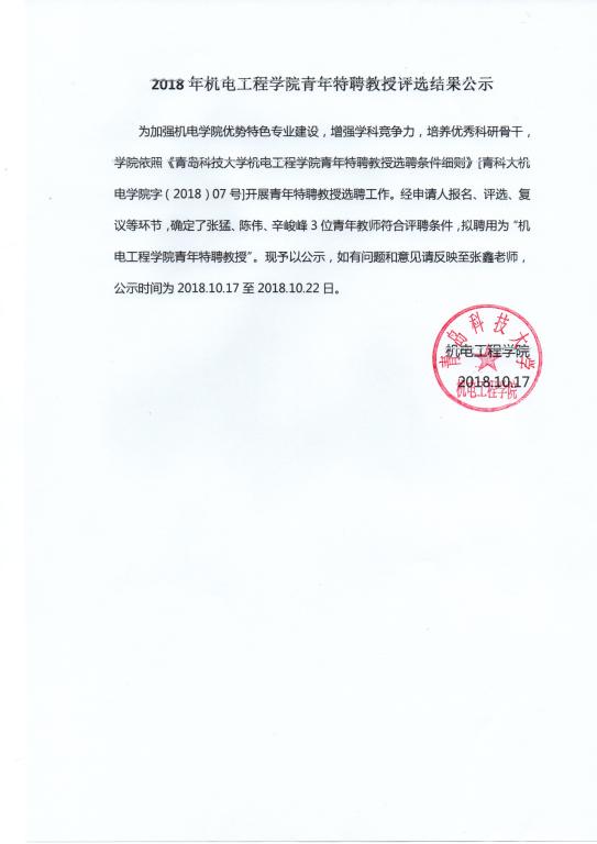 关于2018年bw西汉姆联青年特聘教授评选结果公示