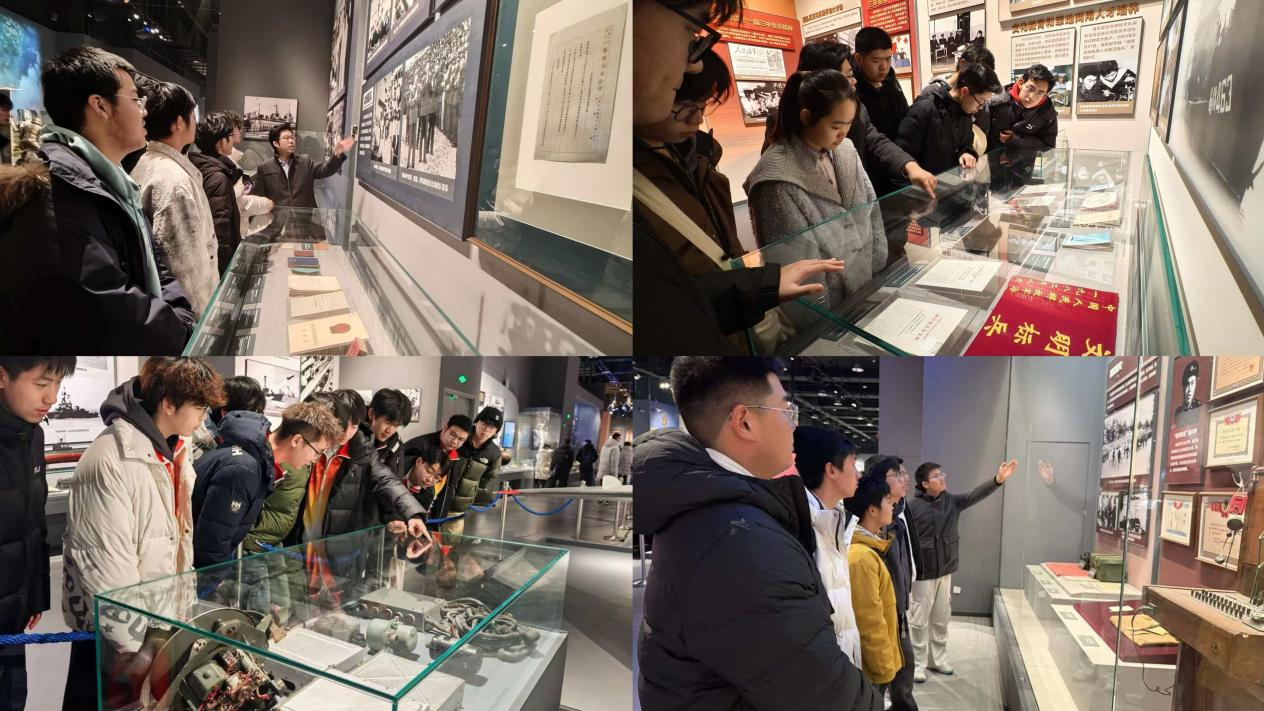 步入海军博物馆主展馆,带队老师于超以海军博物馆的珍贵藏品为教材,为同学们带来了一堂行走的国防教育思政课。泛黄的文献、锈蚀的武器静默陈列,无声诉说着人民海军艰辛的创业史。于超紧扣历史脉络,生动讲解人民海军战舰的跨越式发展,让在场同学深刻认识到“国无防不立”的深刻内涵。