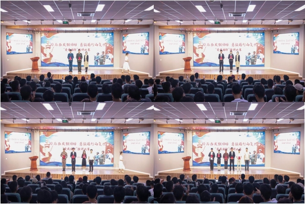 10名选手演讲结束后,征兵宣讲团代表刘易、宋安昱通过自身经历分享和当下国家政策分析,向同学们描绘了真实部队中的生活,同时鼓励同学响应国家号召应征入伍,在军队中实现自己保家卫国的理想与抱负。
