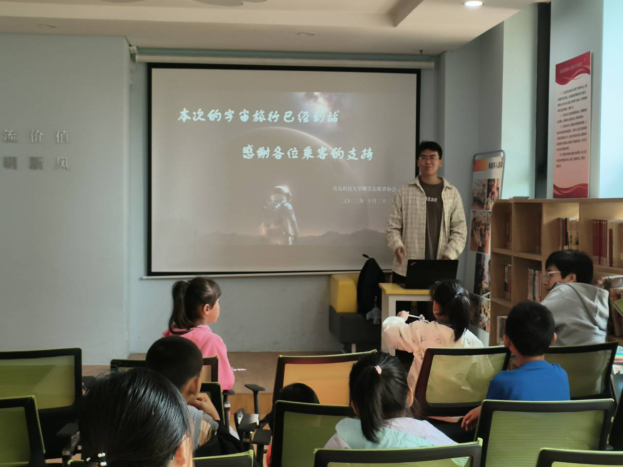 本次“神秘的宇宙”科普活动,响应了党的二十大立志做有理想、敢担当、能吃苦、肯奋斗的新时代好青年号召。使小朋友们在轻松愉快的课堂氛围里了解了宇宙的奥妙,在小朋友们心中种下探索未知宇宙的种子。希望在接下来与延川路社区每周科普小课堂的合作中继续让小朋友们收获更多的知识,提高学习的兴趣。