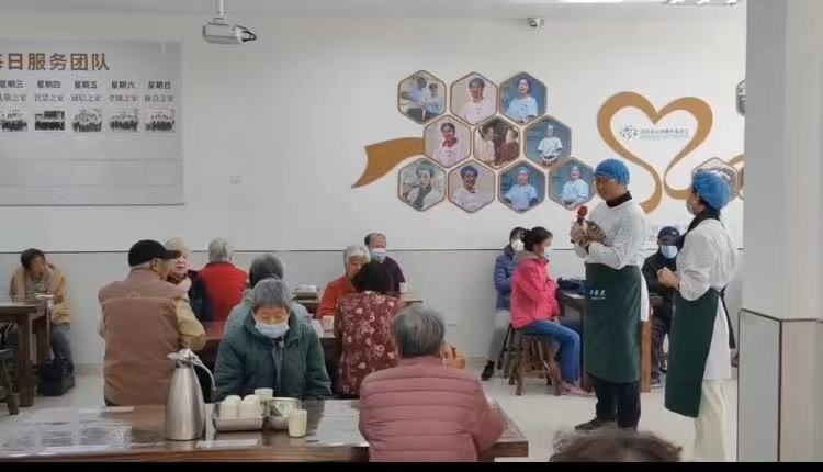 本次活动以向老人制作素食午餐为主,餐饮服务保障和精神交流陪伴相辅相成。活动在歌唱表演《我和我的祖国》中拉开序幕,志愿者们以饱满的热情赢得老人们幸福的笑容和热烈的掌声,活动现场一派欢乐祥和。