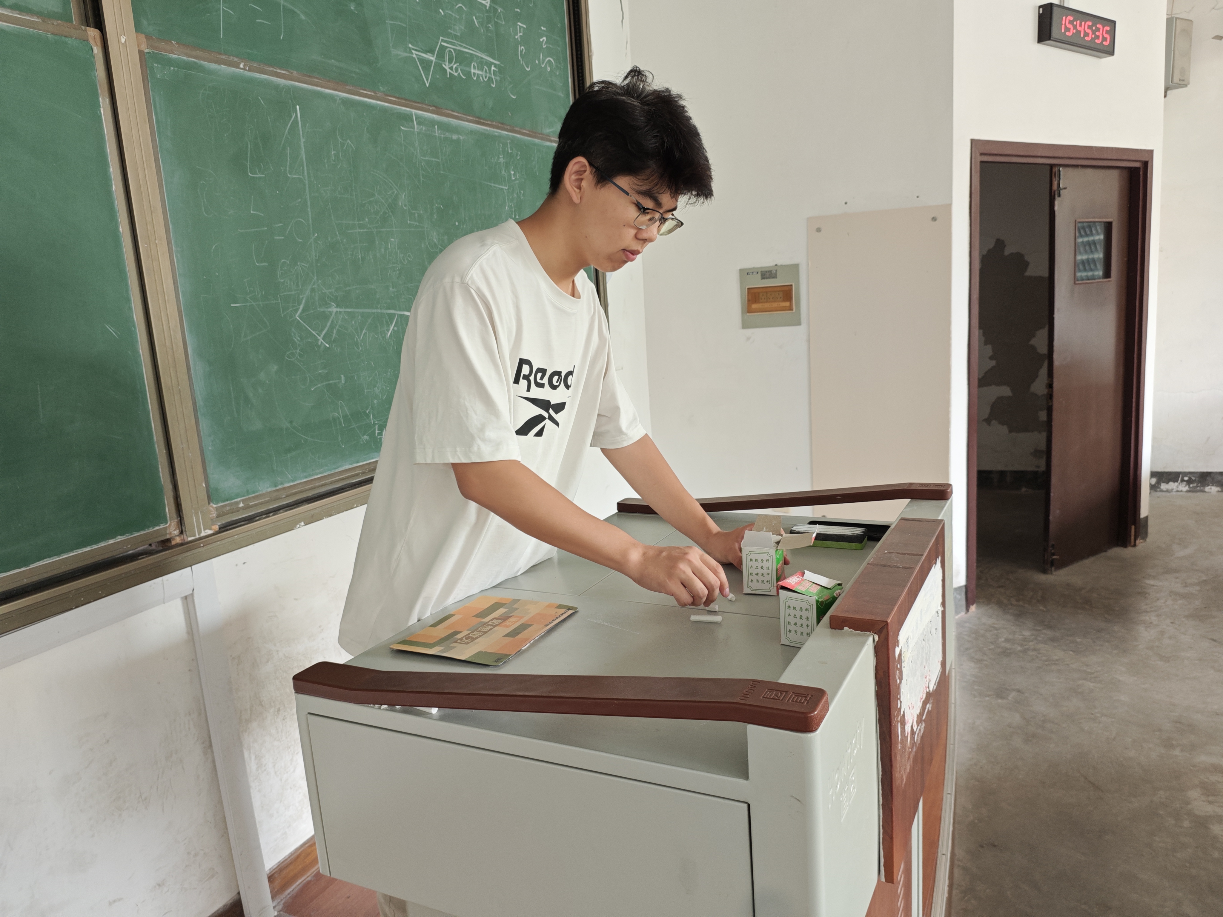 活动最后,志愿者们携带清洁工具来到明德楼教室,分组对教室、走廊进行清扫。黑板擦擦去黑板笔迹,扫帚清除地面杂物,双手整理讲台,俯身拾起纸屑,这既是对物理空间的彻底清扫,更是对廉洁精神家园的精心维护。