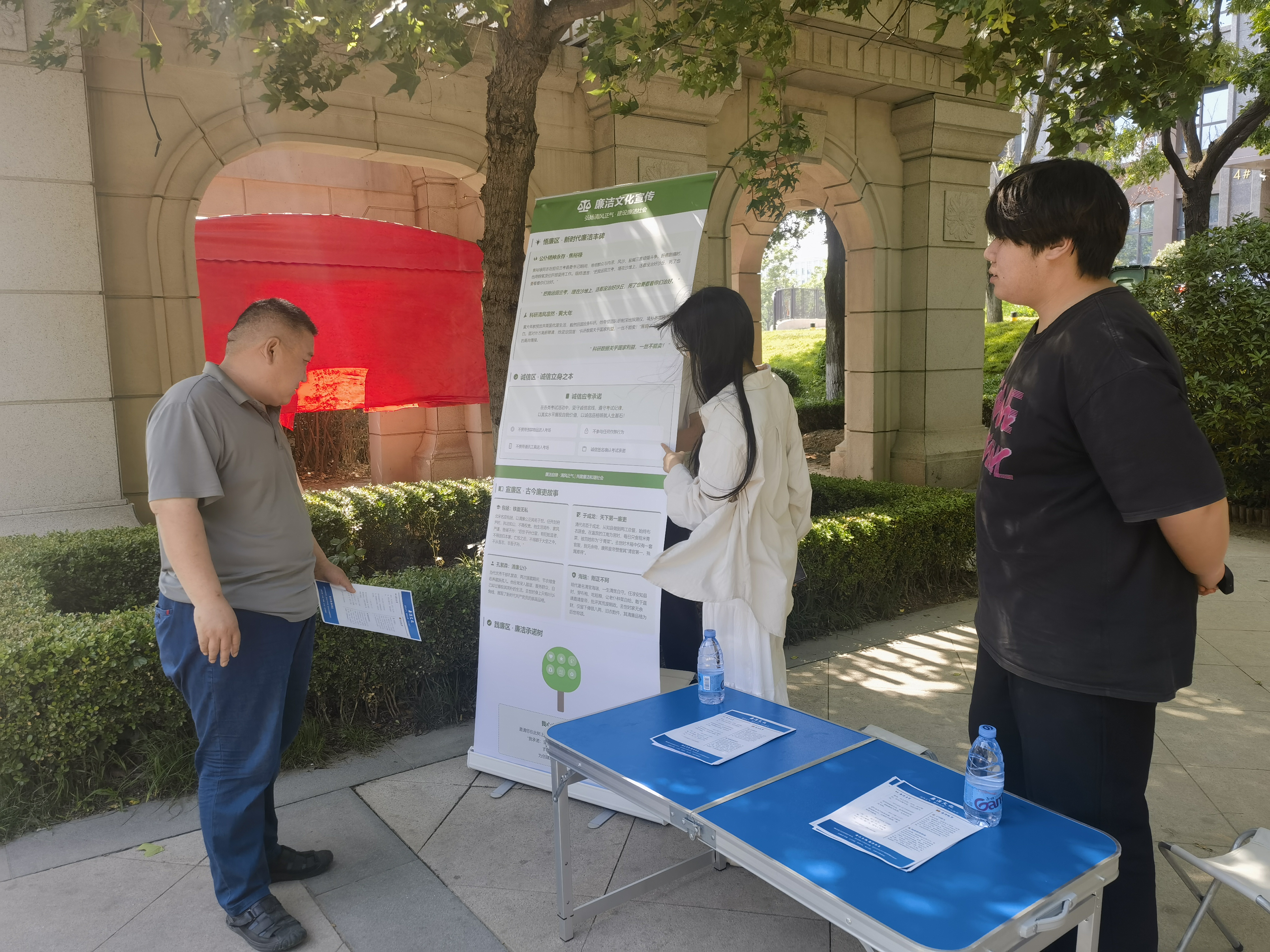 活动伊始,志愿者们携带自制的廉洁文化宣传材料走进周边社区,向社区居民讲述包拯“不持一砚归”、焦裕禄“补丁被褥”、黄大年“赤子归国”等清廉故事。志愿者还向居民发放了自制的廉洁文化传单,让廉洁理念以更鲜活的形式融入日常生活,居民主动领取传单,表示要将廉洁故事作为家庭教育的素材。