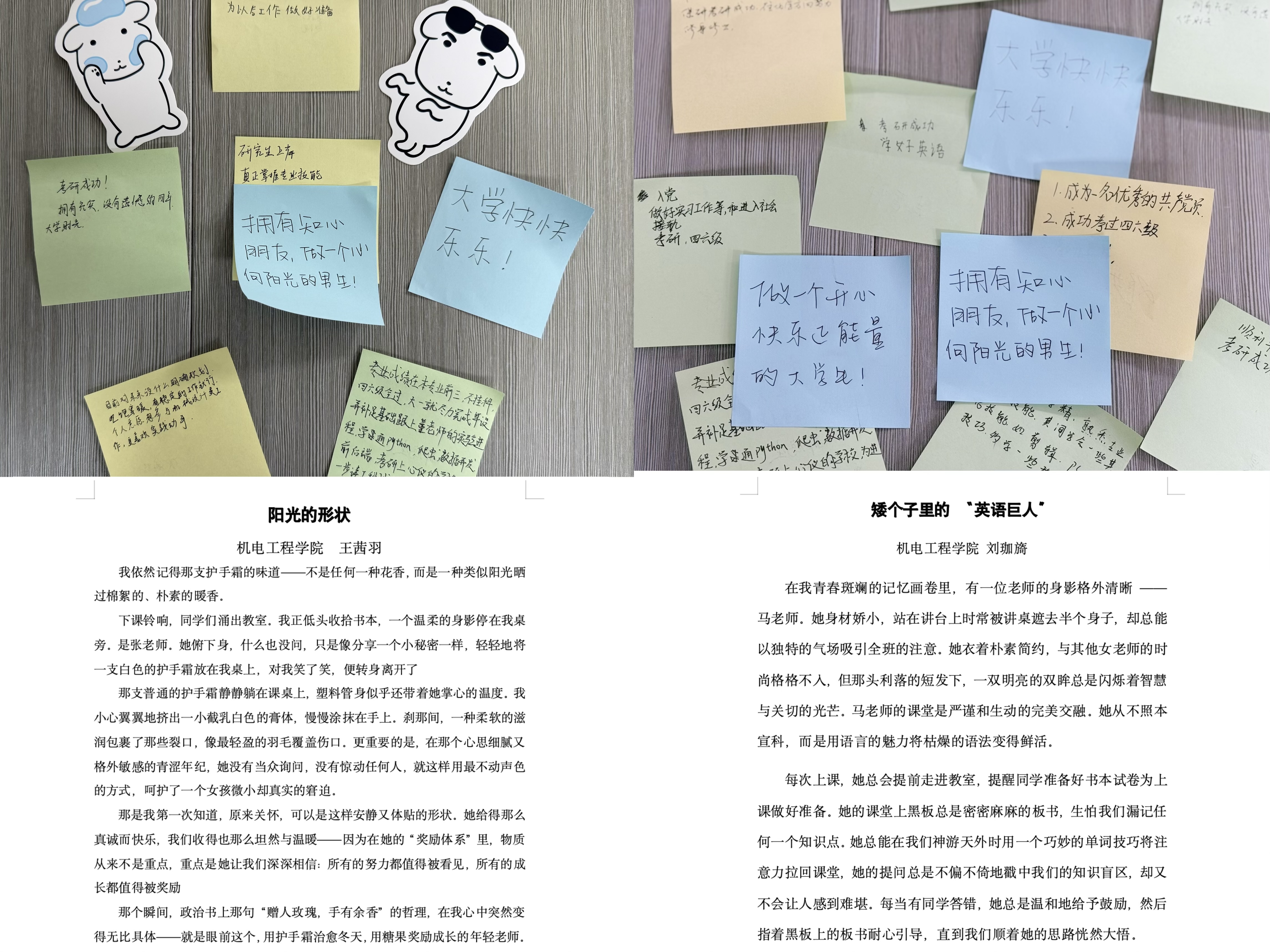 活动开始,“时光寄语、心语传递”手写便利贴活动吸引同学参与。现场提供米黄、米白、浅蓝等色彩的便利贴。同学们满怀真诚,将想对自己说的话认真书写下来,这些承载着不同心境的便利贴被悉心收集起来,将在未来某个特定时刻,为同学送上一份温暖的惊喜与感动。同时,为进一步加强师生间的情感,公司开展短文和手写明信片征集活动,分享与老师的温馨时刻和暖心故事,诉说心中的浓厚感情。