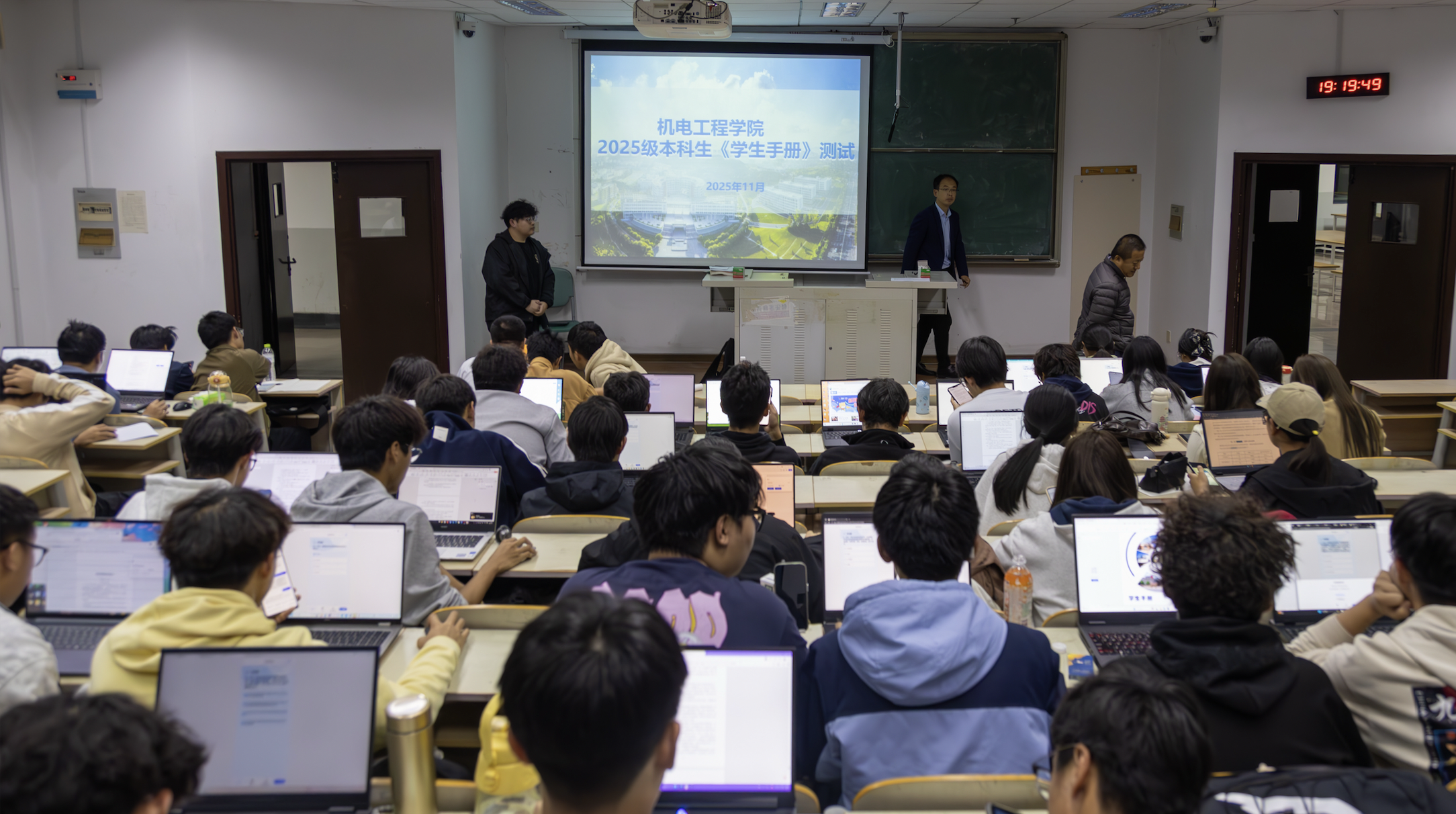 此次《员工手册》知识测试在各班晚自习教室统一进行。考试过程中,考场秩序井然,同学们沉着应考、认真作答,展现了2025级新生严谨务实的学习态度和积极向上的精神风貌。此次测试重点考查了学籍管理、考试纪律、宿舍管理规定、员工资助政策、评奖评优条件及员工违纪处理办法等与员工日常学习生活密切相关的规章制度。