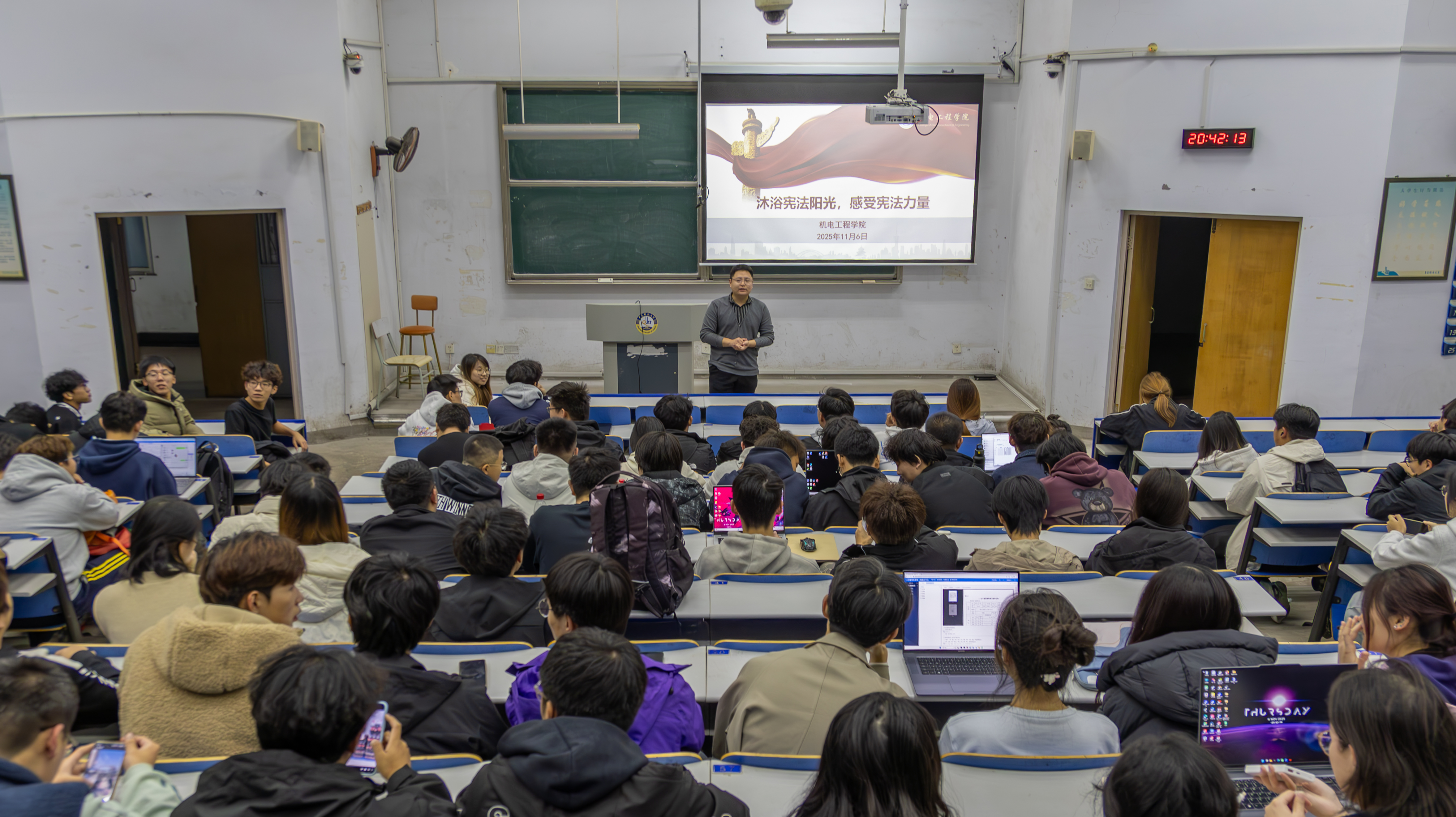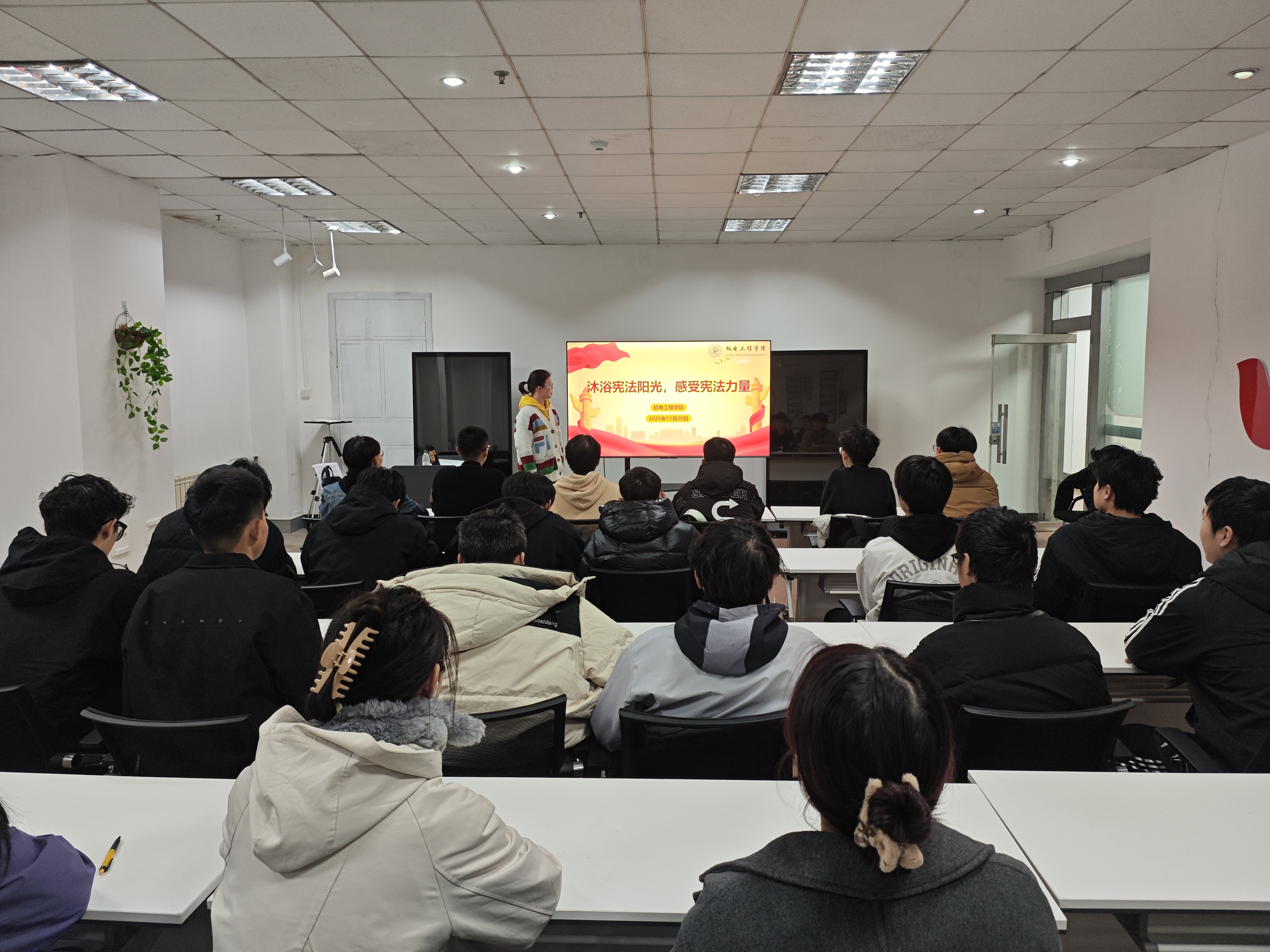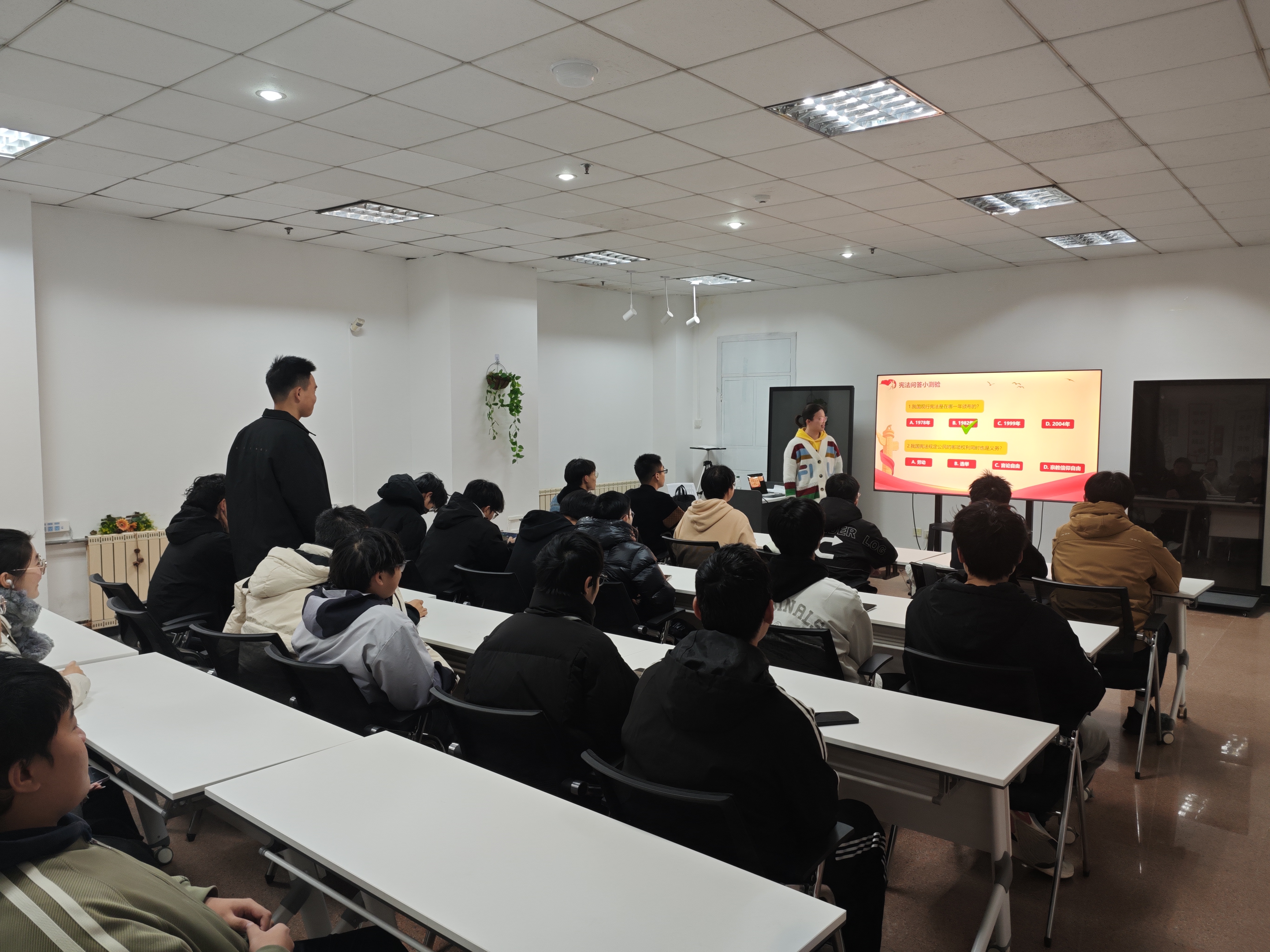 公司在机电楼D3-530举办专题宪法讲座,主讲教师用通俗、生动的讲解,为员工构建清晰完整的法治认知体系。与此同时,各年级辅导员深入班级,通过宪法知识竞赛、小课堂微互动、同唱宪法歌曲等形式,增强课堂参与度和体验感,让抽象的法律条文以可视、可感的方式“活”起来,使法治教育真正做到润物无声。