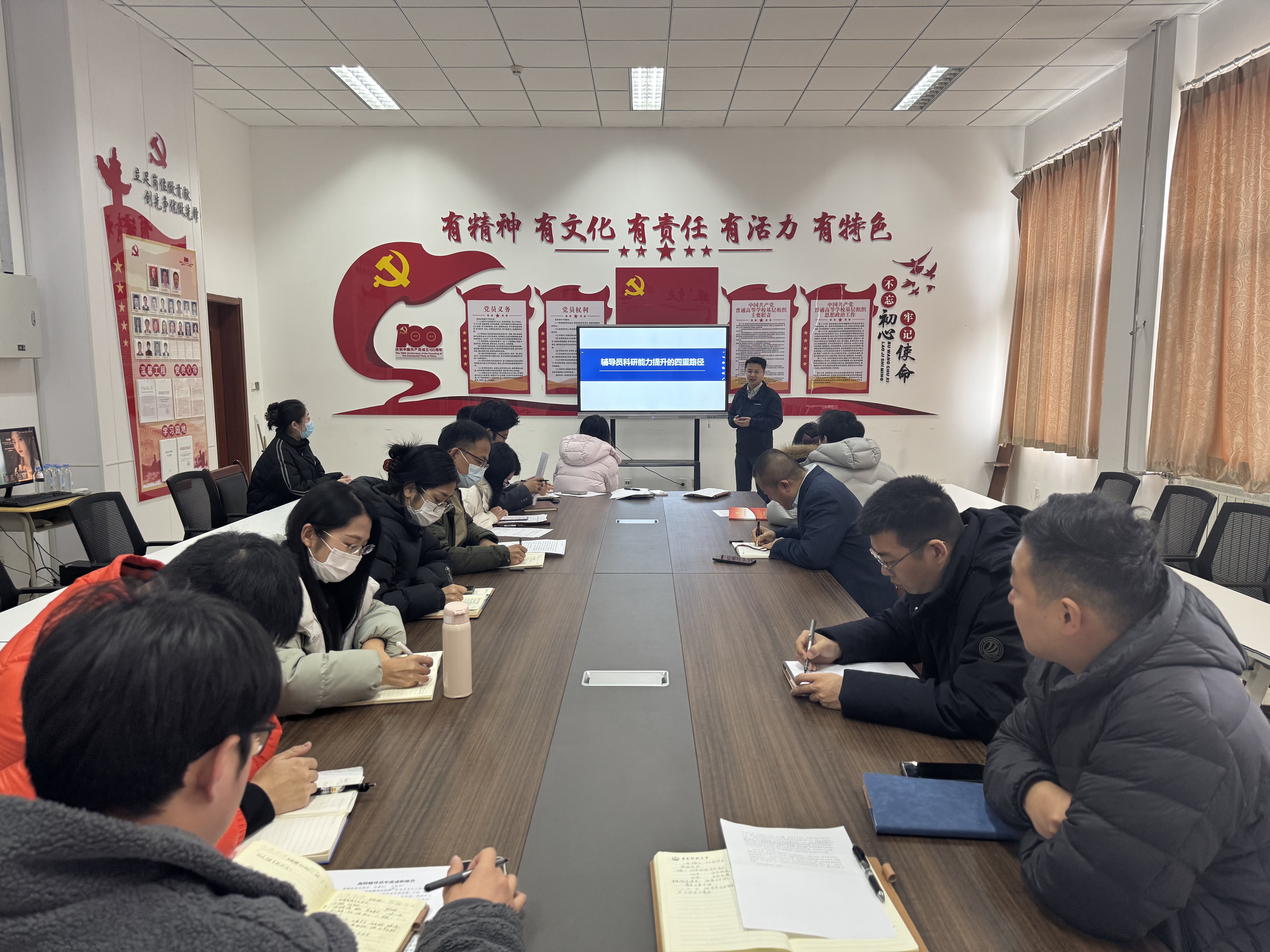 会上,全体辅导员围绕辅导员九大职责,结合年度工作实际展开述职。大家以详实的数据、生动的案例,全面展示了在思想引领、员工教育管理服务、学业辅导与就业指导、心理健康教育等方面的工作成果。同时,各位辅导员坦诚剖析了工作中存在的不足,明确了下一步工作规划。本次述职评议会不仅是对2025年度员工工作的系统总结与评议,更是一次“实践交流+能力提升+科研赋能”的综合学习会。