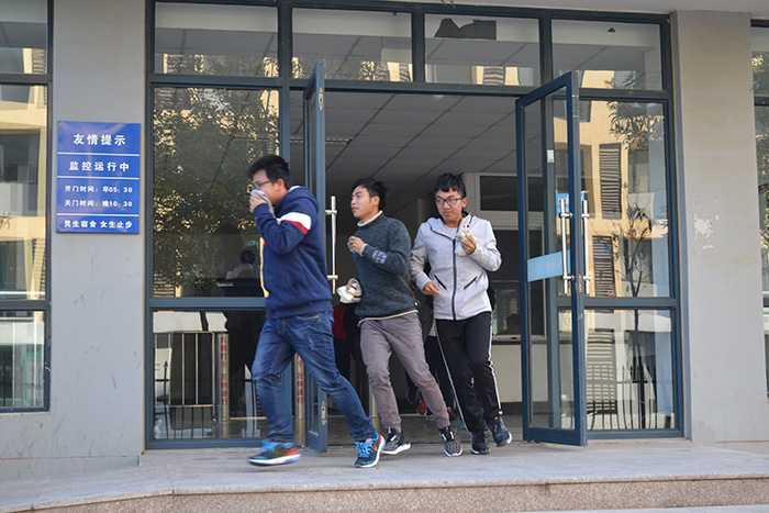 前期准备,指挥长向同学们讲述了消防安全应急知识,教同学们在火灾发生时如何正确的扑救、自救和快速逃生。随后,演练正式开始,工作人员点燃事先准备好的模拟烟雾弹,北苑2号楼的一楼及二楼随即浓烟滚滚,宿舍楼内安全警报系统在第一时间启动,各宿舍内员工迅速反应,用毛巾衣服捂住口鼻,低头弯腰躲避浓烟,按照指引沿安全通道撤离“火灾现场”,及时疏离到户外安全位置。最后,指挥长对此演练做出简要总结,希望同学们能增强消防意识。至此,消防安全逃生演练顺利结束。