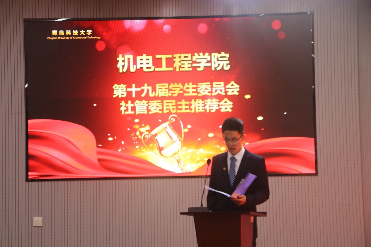 在主持人宣读竞聘流程和评分标准后,参加竞聘的7位候选人按照抽签顺序依次上台演讲。讲述自己的活动经验以及竞聘的原因和优势,他们慷慨激昂、语句流畅。评委依据公平公正的原则,为7位候选人评分。