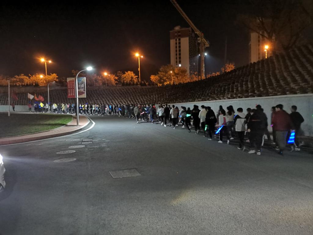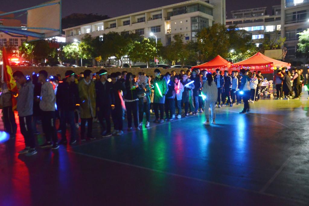 他们先后去到图书馆、机电大楼、北七宿舍楼、弘毅楼、南五宿舍楼,将绚丽多彩的荧光带到公司的各个角落。最后回到了操场,由青尘义工队队长邱琦抽出今晚的幸运天使,并赠与其爱心大礼一份。