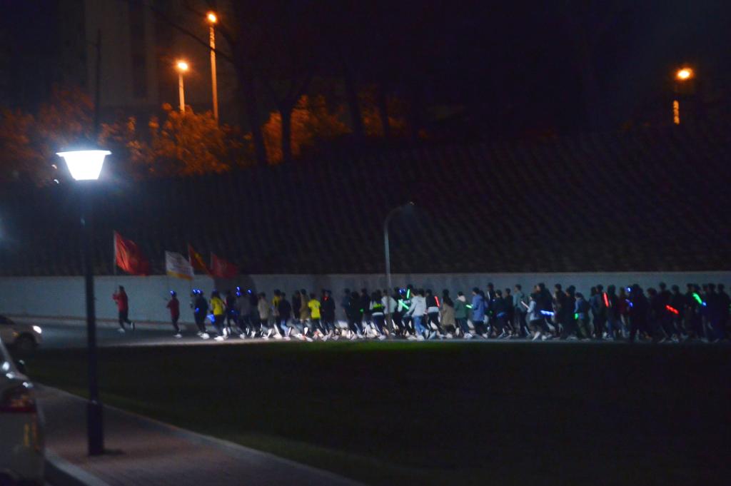 经过两天的宣传准备,公益酷跑活动正式拉开帷幕,每个参赛人员排队签到,领取自己的专属号码牌,在主持人的一声令下,他们整齐有序,身上点缀着炫丽的荧光,浩浩荡荡的向着前方跑去,最前方领跑的工作人员,举着bw西汉姆联院旗,扬帆、青尘、跑步爱好者协会队旗紧随其后,象征着一个富有爱心,拥有强健体魄,向着一个共同的目标大踏步地迈进。
