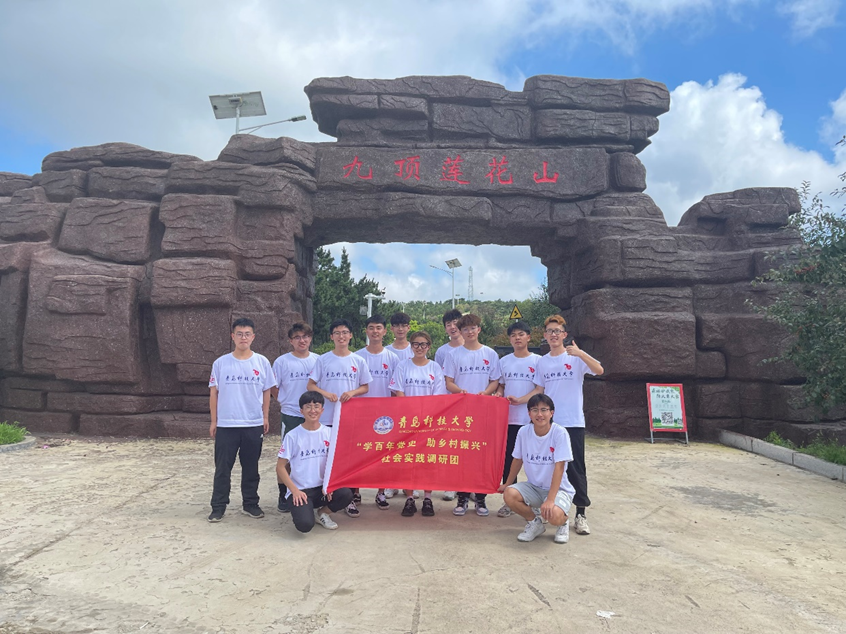 下午,在村领导的陪同下我们参观了当地旅游景点九顶莲花山,其依靠当地生态环境,农业产业园,依山而建,具有完备的游乐设施、动物园等体验项目,充分发挥了当地的环境优势、产业优势、生物资源优势。实践团同学感受到了大自然的美丽,令人流连忘返。