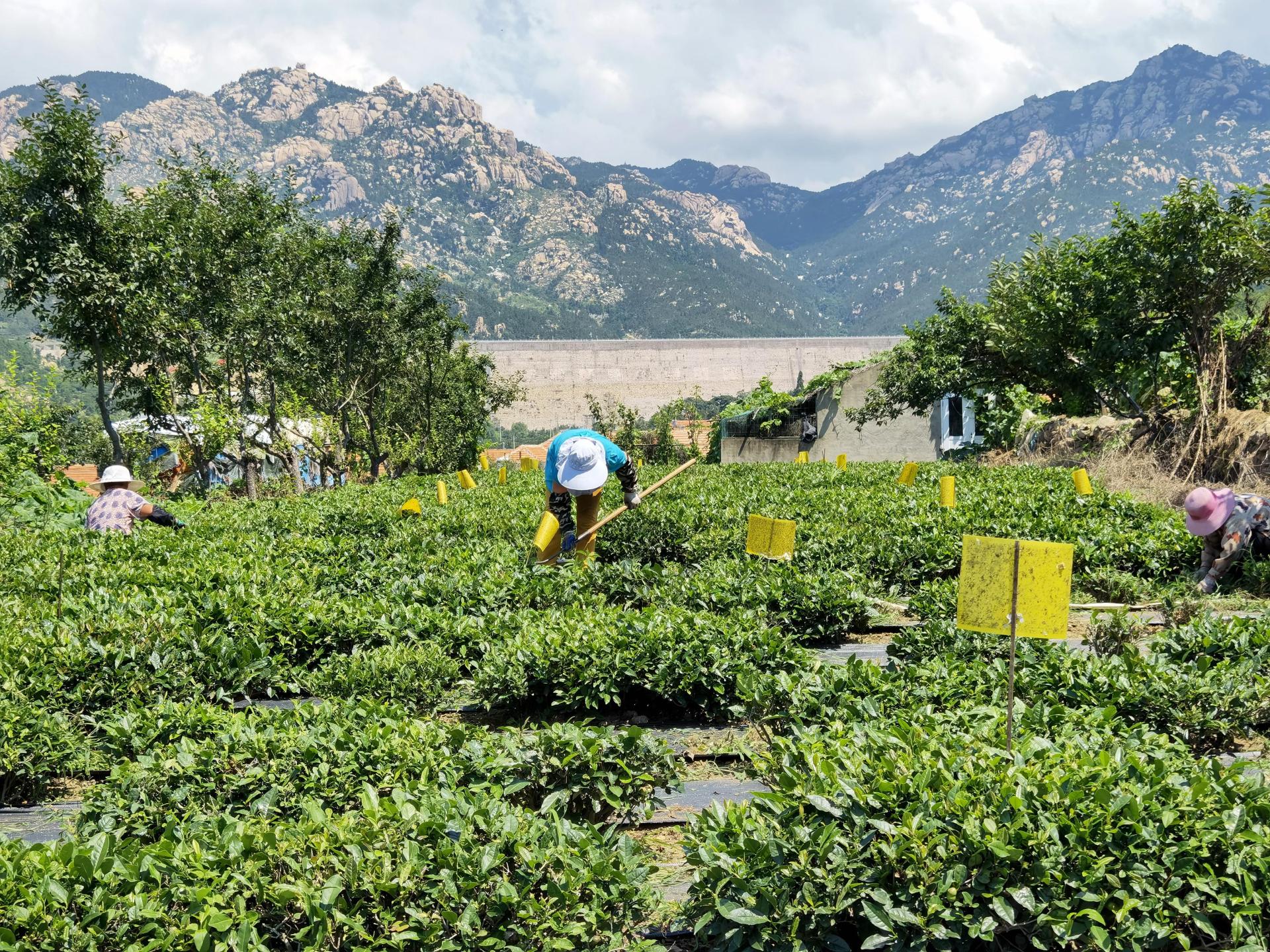 团队与茶园工作人员进行交流,简单了解了茶园历史,茶园内种植茶叶的种类,生产的过程及价格。随后,团队成员参观茶园,近距离观察不同种类的茶树,了解茶园的防虫措施,对茶树种植有了更加深刻的认识。据悉,云泉春茶园的历史可以追溯到1965年第一批南茶北引大河东村。同时,茶园的主要使用政府发放的除虫黄板来防虫,在茶叶生产过程中要做到当天采的茶当天加工,近几年茶园的收入显著提高。