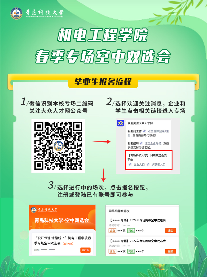 本次双选会采用“大众人才网”网上报名方式,之前未在大众人才网平台注册过的企业和个人需先进行注册完善信息后再报名参与,注册网址www.dazhonghr.com