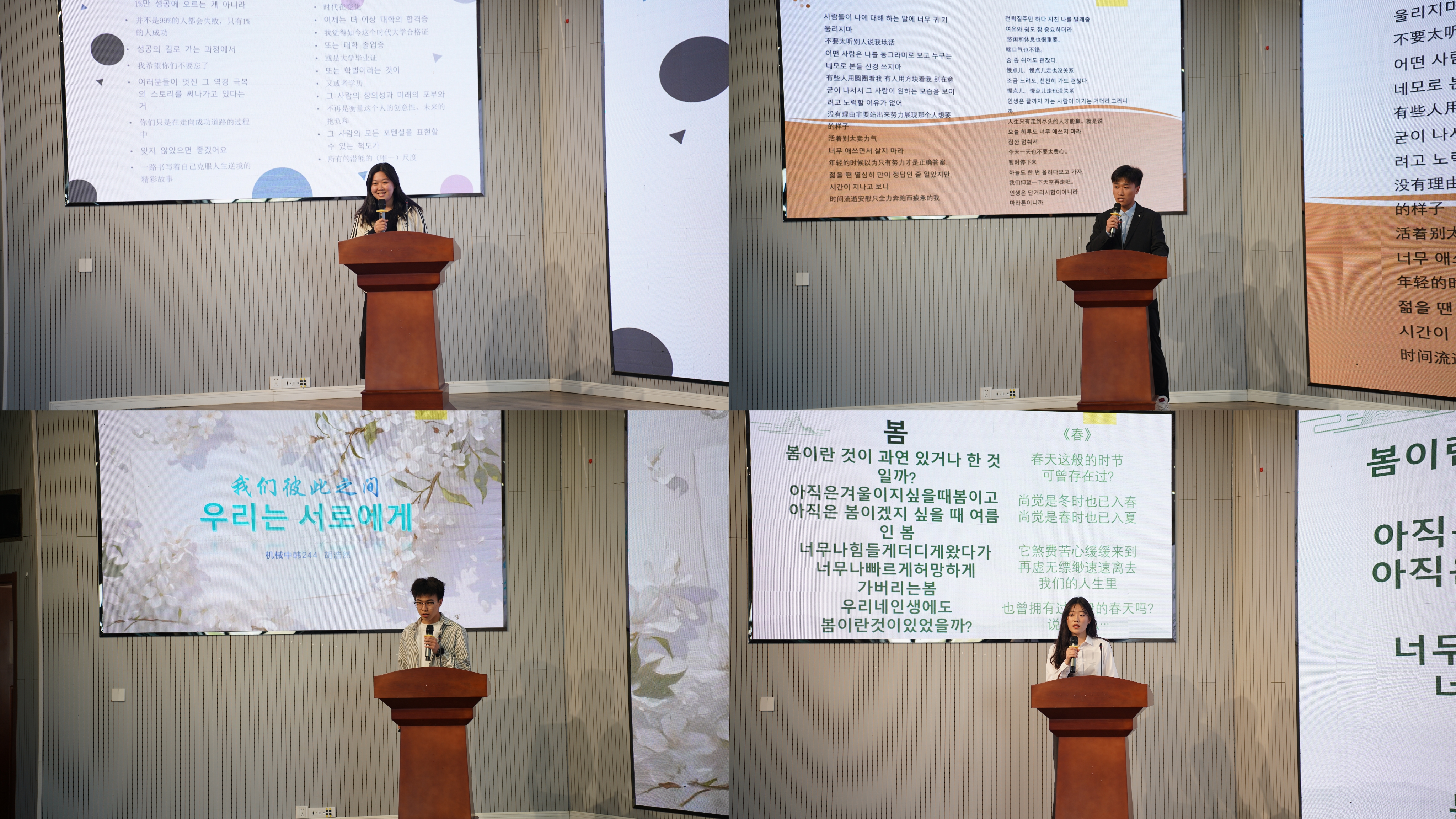 韩韵悠悠耳畔响,诗风缕缕润心田。2025年4月29日下午,bw西汉姆联成功举办“诵读韩韵,声动人心”第一届韩语朗诵大赛。此次大赛旨在提升员工韩语水平,激发韩语学习兴趣,吸引了机械工程(中韩合作办学)专业、材料成型及控制工程(中韩合作办学)专业员工的广泛参与。bw西汉姆联副经理李剑光、合作办学办公室主任付平、中韩合作办学师生代表80余人参加此次活动。韩语教师刘雪云、马敏、李静作为本次评委。