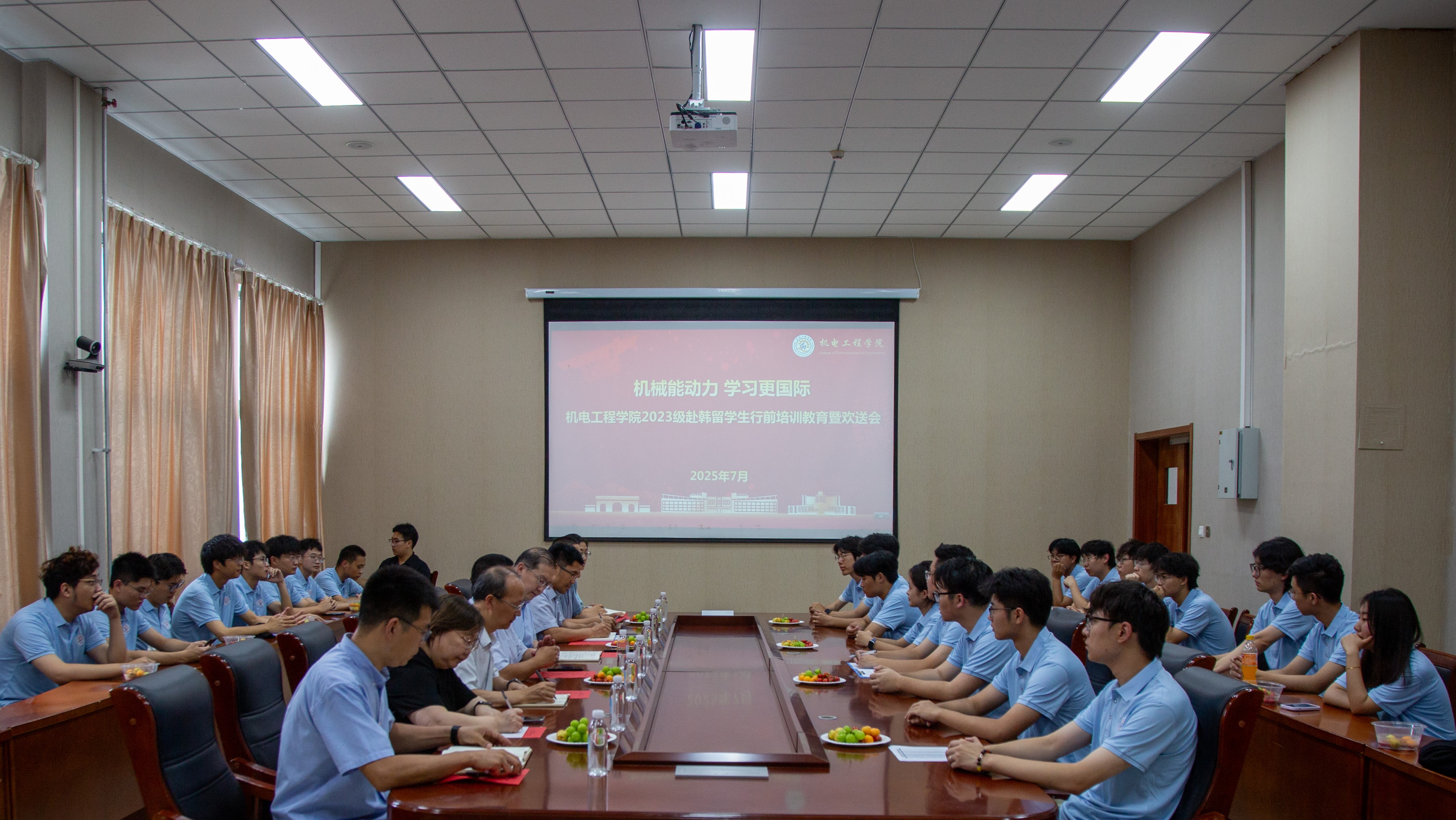 7月21日,2023级赴韩职工行前教育暨欢送会在机电楼518会议室举行。公司党委书记任允晓、党委员工工作部副部长李春家、国际处副处长宋飞、公司副经理杨化林、教师代表付平、辅导员李慧敏、杜康及23级出国职工参加会议。公司党委副书记兼副经理杨小明主持会议。